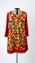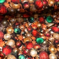 Bomuldsjersey med print af julepynt i rød, guld, grøn og orange.