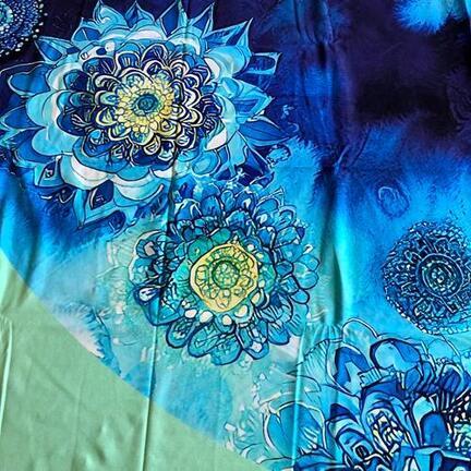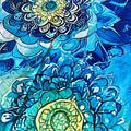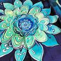 Mandala blomster i blå og mint nuancer.