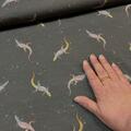 Grå meleret bomuldsjersey med print af sjove gekkoer.