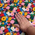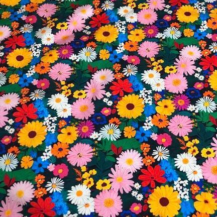 Bomuldsjersey med blomster i alverdens farver.