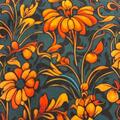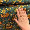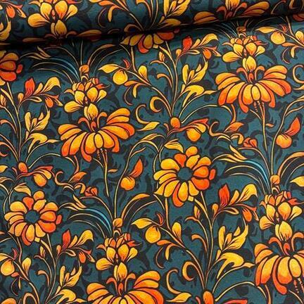 Petrol bomuldsjersey med smukke orange liljer