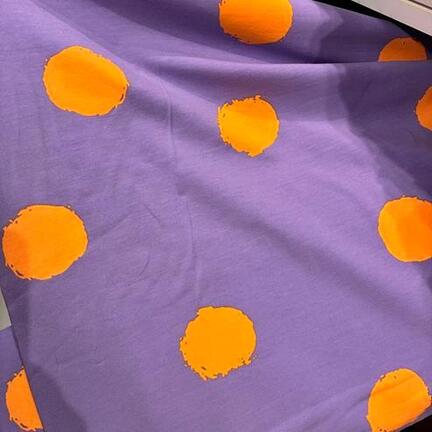 Lys lilla bomuldsjersey med orange polks prikker