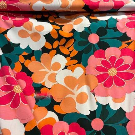 Varenummer: Jerseykjole - store retro blomster