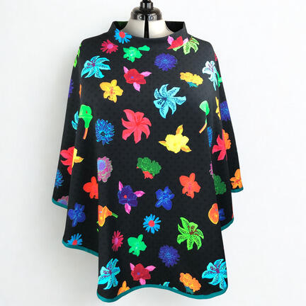Varenummer: Poncho - Sort blomstret poncho