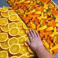 Unika pakke med sjovt print af gule pebefrugter og appalsiner