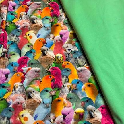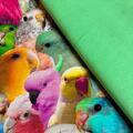 Unika pakke kulørte undulater og papegøjer, sat sammen med lys grøn
