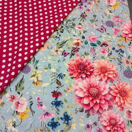 Unika pakke med smukke georginer og pink med polka prikker