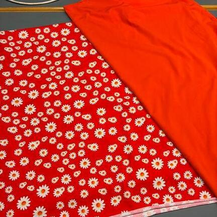 Unika pakke med marguritter på orange bund, sat sammen med ensfarvet orange.